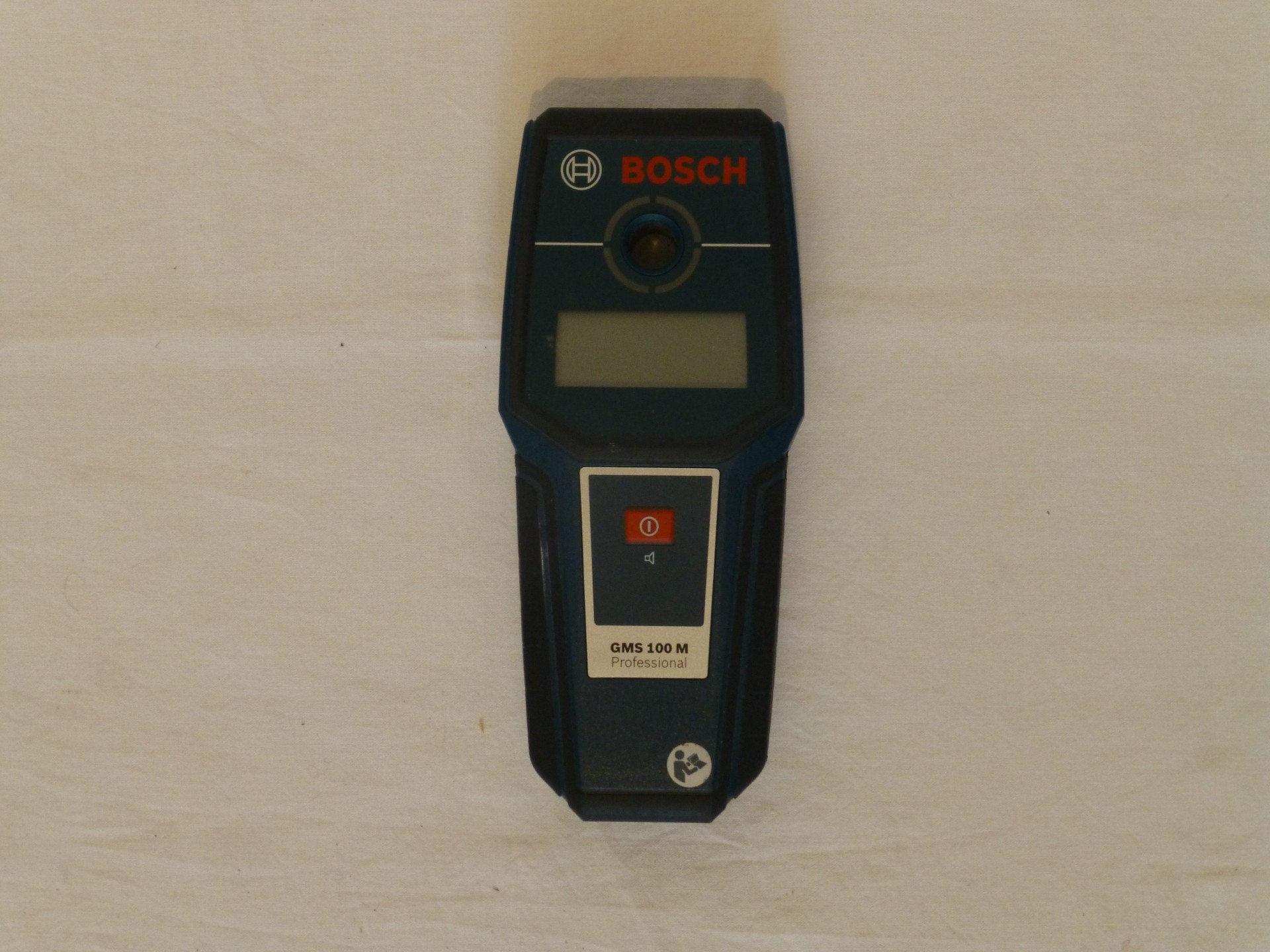 Kabel- und Metalldetektor Bosch GMS 100 M, vor dem Bohren kann man eventuell in der Wand liegende Stromleitungen aufspüren.